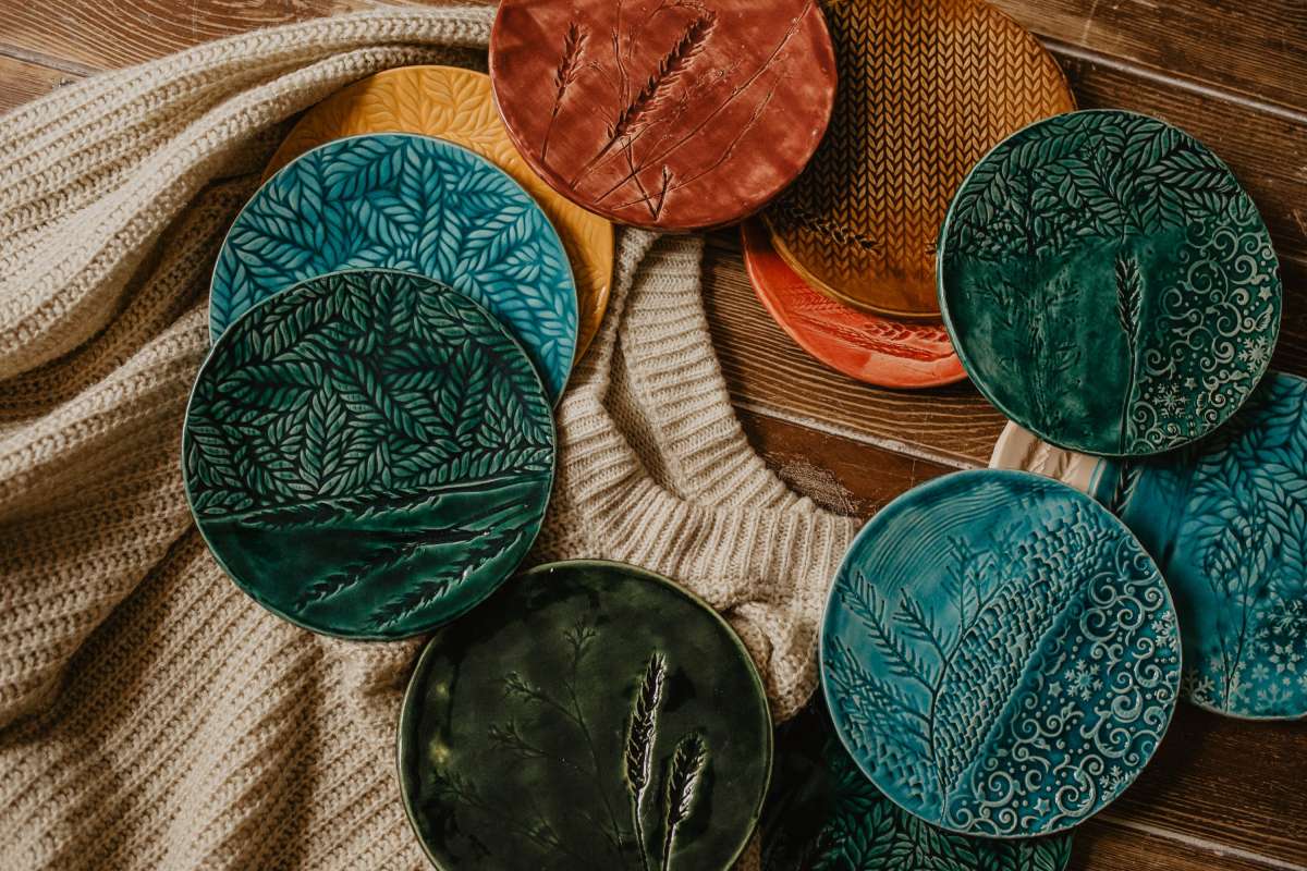 Мастер-класс очень простой, но 1,5 часа пролетают незаметно. Для того, чтобы сделать одну тарелку, нужно вначале от души простучать кусок глины, раскатать его ровно и тонко, тщательно проверить на возможные пузырьки воздуха. Потом загладить с двух сторон специальной пластинкой. Дальше самое творческое и интересное - придумываем узор, отпечатываем листья, кружева, штампики, фигурные скалки, все, что пожелаете!